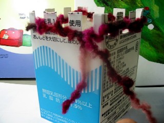 で今、三個目でそうとうにダレダレ。 飽きました。 もう毛糸は触りたくないです。かといって牛乳パックの加工モノももう嫌だよ、チラシを丸めるだのも嫌だ。 瞼がピクピクしとりますよ、ふふふ逃避ですか? そうですね、そうなんですけども、