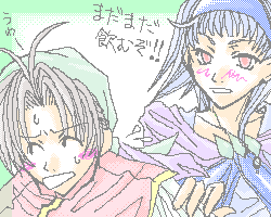 シエラ様も大好きです。 ってことで、長寿コンビ。 お酒に誘われた坊ちゃん。ザルだからいくらでも平気だけどさすがに寝たい。 ・・・・でも、シエラ様のお許しがでません。 |