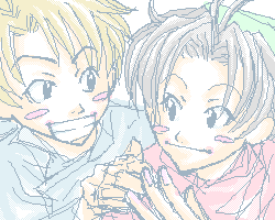 ちっちゃい坊ちゃん。 テッドと一緒に仕掛けたいたずらを見張り中。 「おい、やったな、引っかかったぜ〜♪」「成功だねッ!」 仲良し二人組大好きです。 坊ちゃんは小さくてもあの格好か、という疑問は棚に上げておいて。そしてチビ坊ちゃんが 可愛くなくて我ながら悔しい。 |