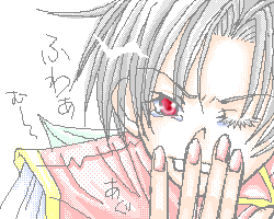 おねむな坊ちゃん。 きっと人前では欠伸なんてすることもないのでしょうね。 グレさんの前位かしら。 パーンやクレオの前でも、しなさそうなイメージなのです。私の中では。 あ、ルックの前はオッケーッポイ感じです。(ルックは誰にも何も言わなさそうだから) |